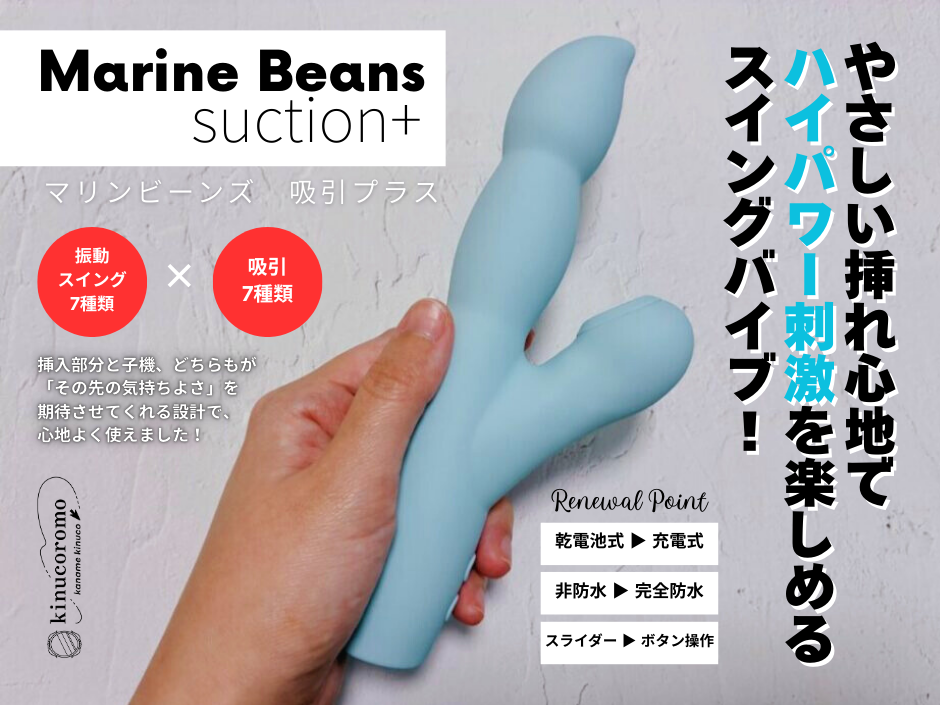 スイングと振動を楽しめる電池式バイブ「マリンビーンズ」の進化版であることから、この商品名となっています。