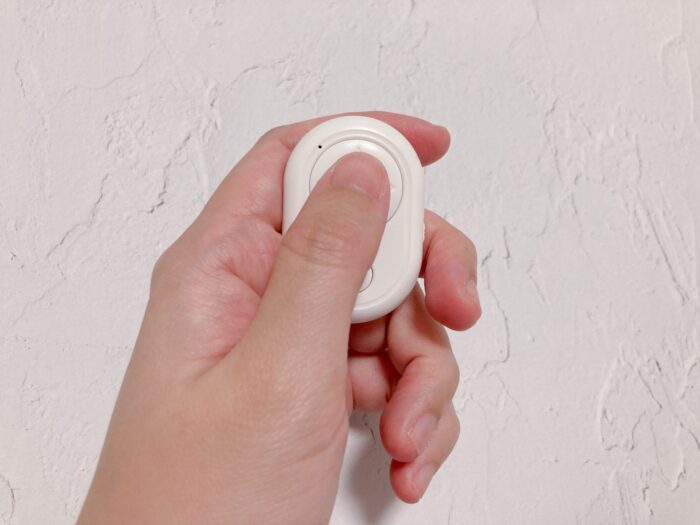 リモコンはかなり小さめのサイズで、シリコン素材ではないぶん少し滑りやすいです。