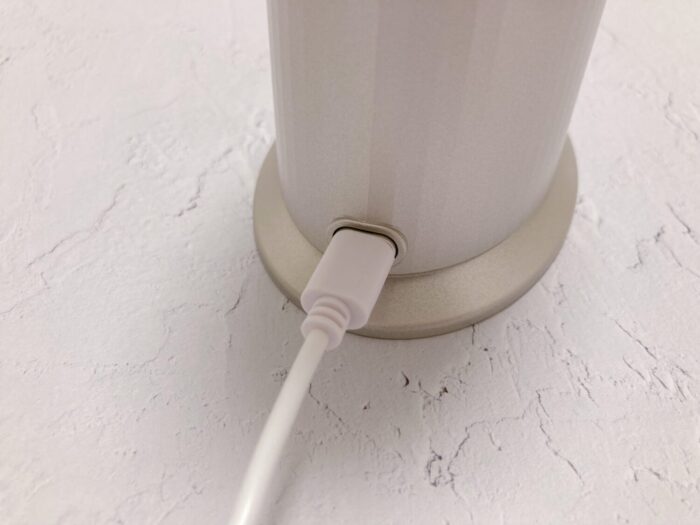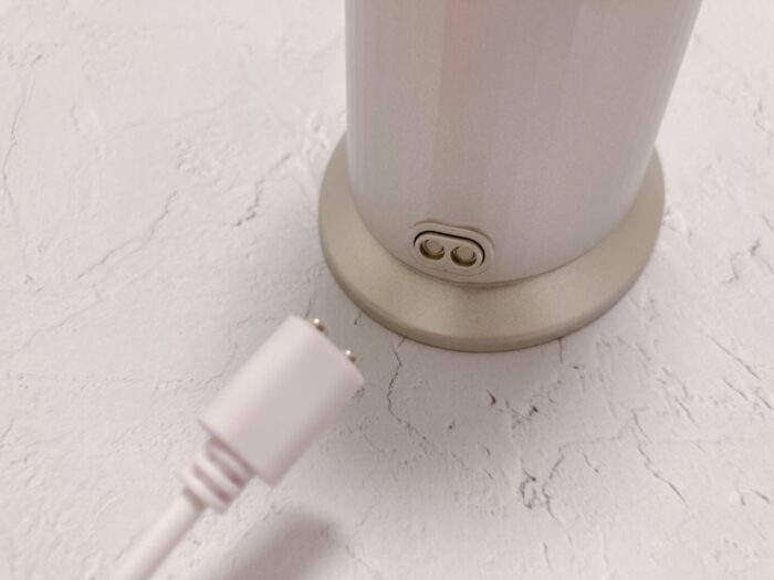充電ケーブルの先端はマグネットで、電源とはUSBで接続します。