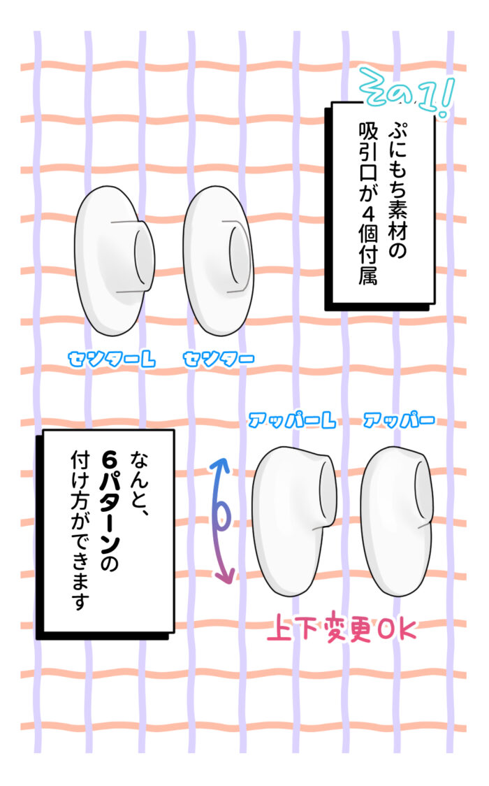 いわゆる「吸うやつ」型のラブグッズですが、付け替えのできるノズルにより、相性を問わずに高いフィット感を味わえる設計となっています。