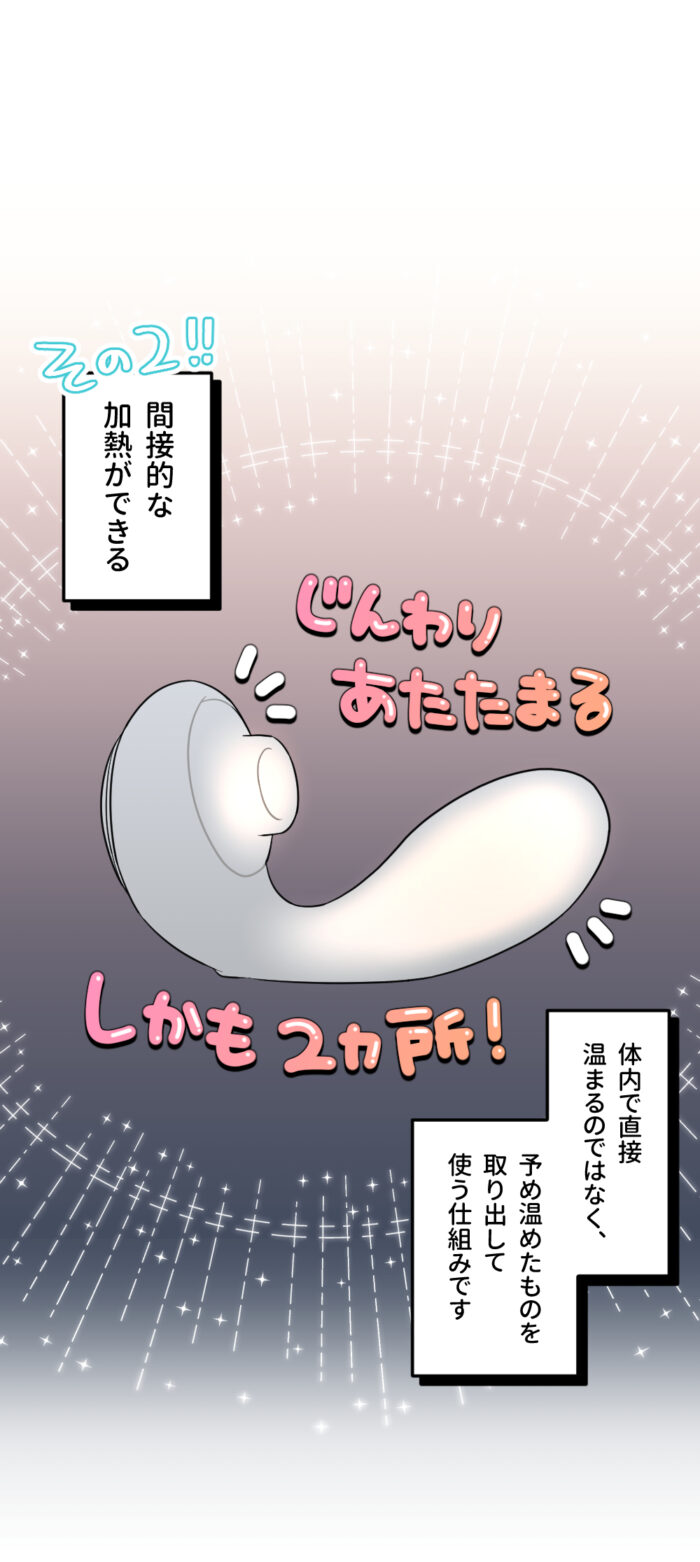 リアルタイムで加熱できるので、外と中がずっと温かいです。デメリットとしては、連続使用可能時間が約55分と短めなのと、挿入直径が37mmと太め…!